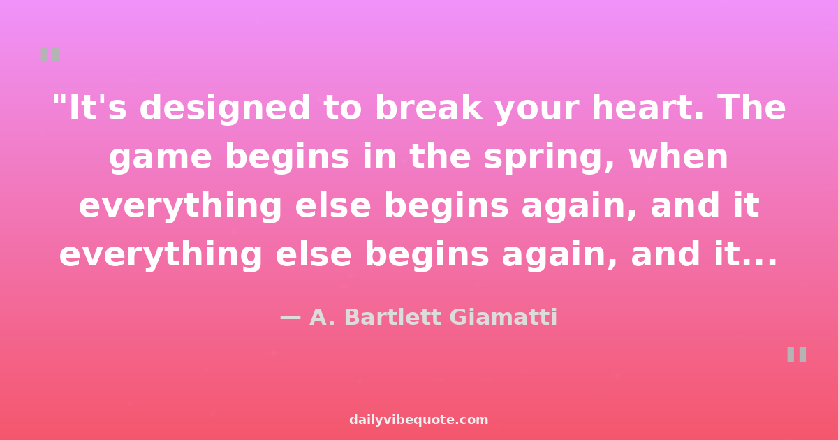 "It breaks your heart. It is designed to break your heart. The game begins in the spring, when everything else begins aga..."