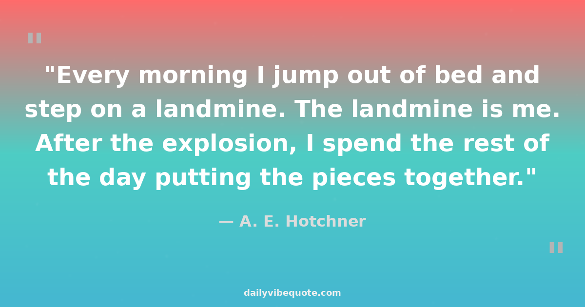 "Every morning I jump out of bed and step on a landmine. The landmine is me. After the explosion, I spend the rest of the day putting the pieces together."