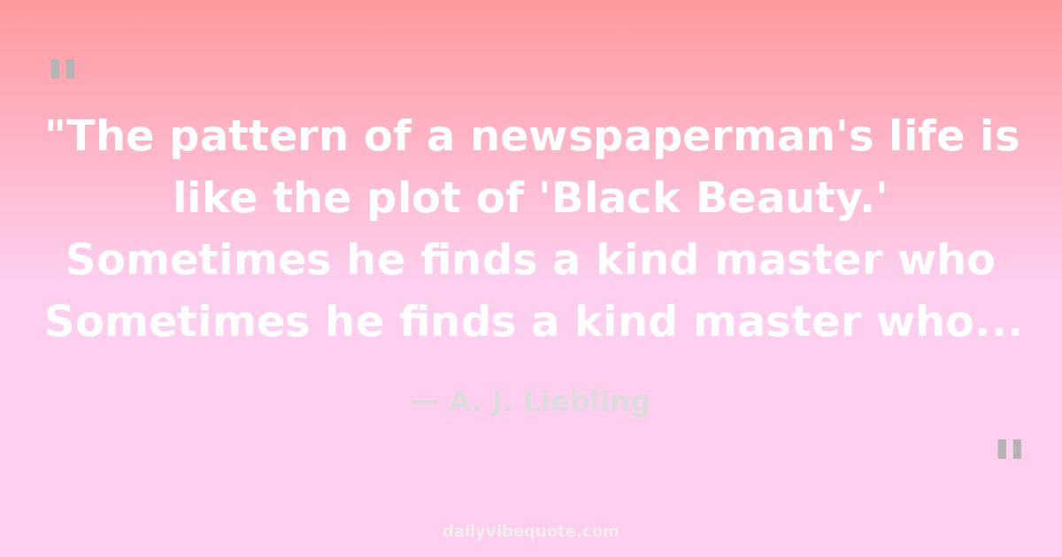 "The pattern of a newspaperman's life is like the plot of 'Black Beauty.' Sometimes he finds a kind master who gives him a dry stall and an occasional bran mash in the form of a Christmas bonus, sometimes he falls into the hands of a mean owner who drives him in spite of spavins and expects him to live on potato peelings."