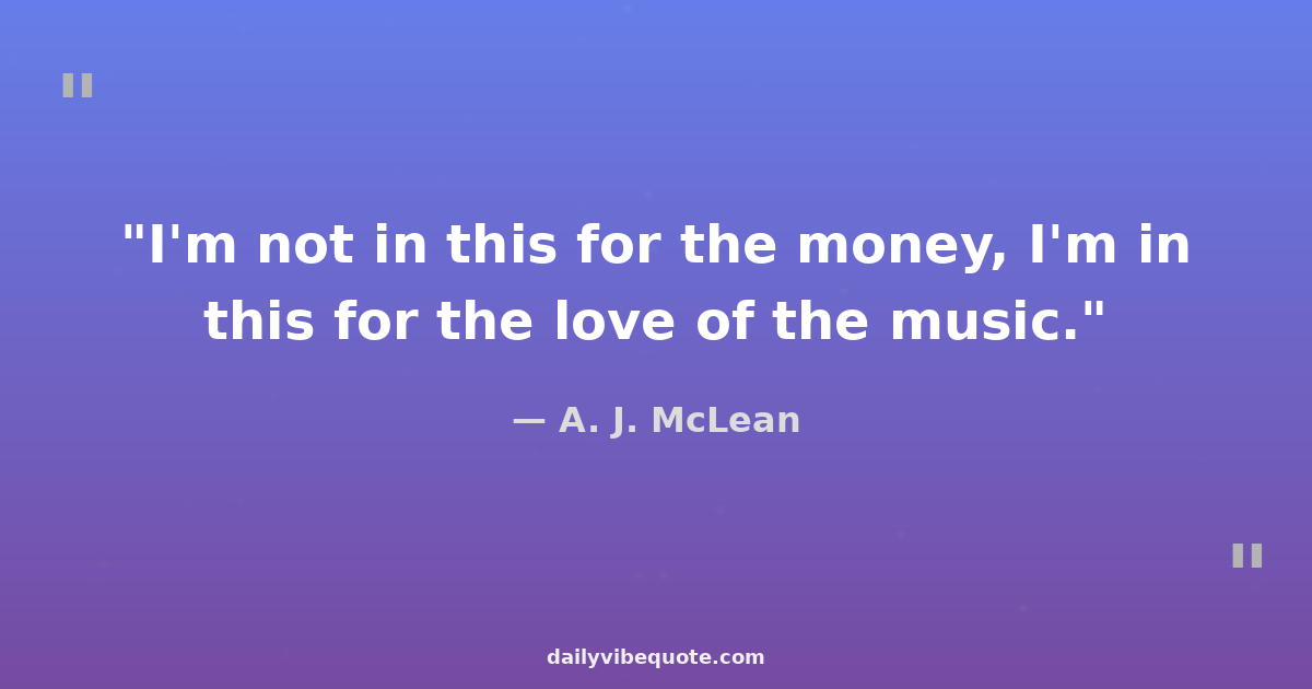 "I'm not in this for the money, I'm in this for the love of the music."