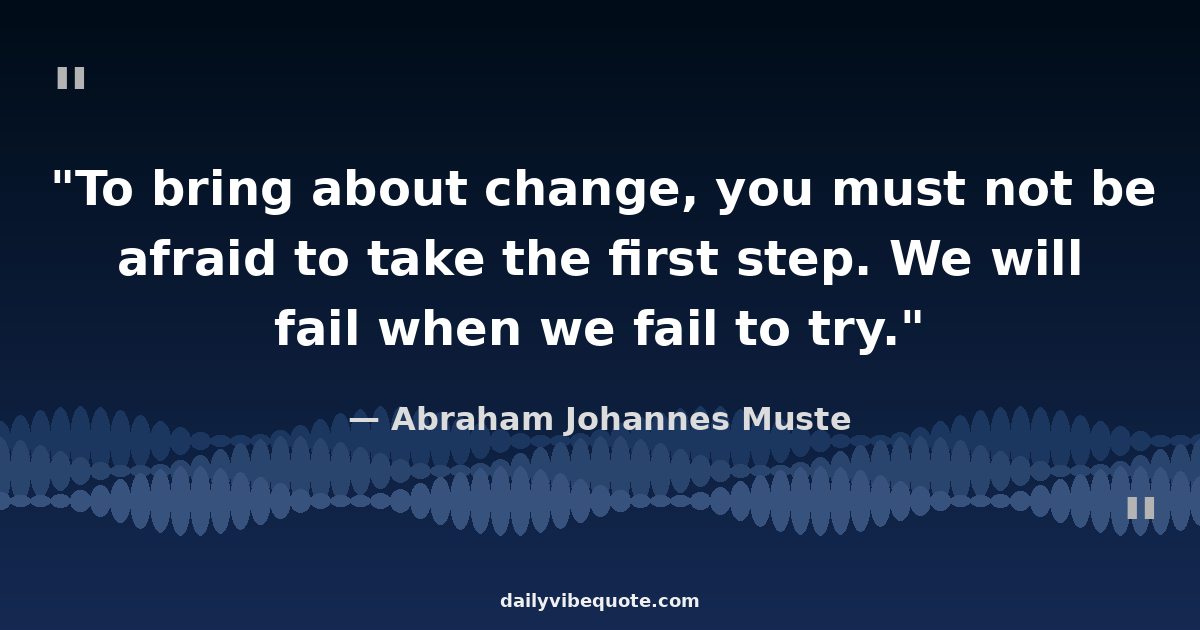 "To bring about change, you must not be afraid to take the first step. We will fail when we fail to try."
