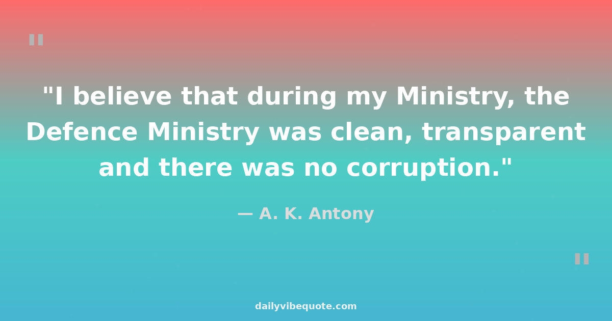 "I believe that during my Ministry, the Defence Ministry was clean, transparent and there was no corruption."
