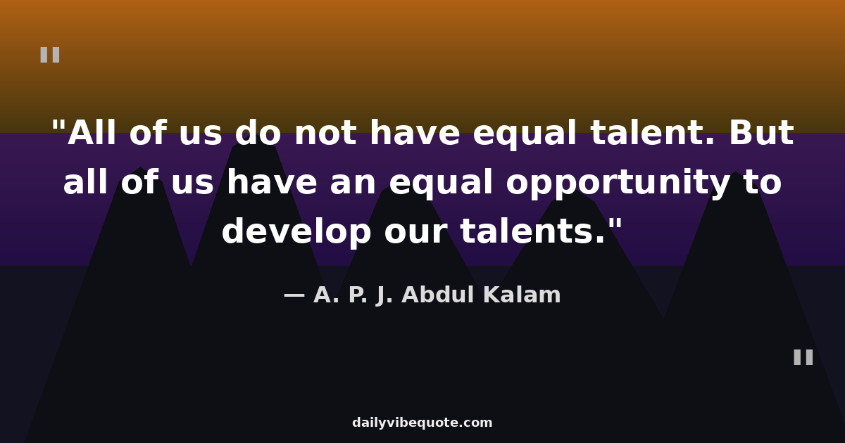 "All of us do not have equal talent. But, all of us have an equal opportunity to develop our talents."