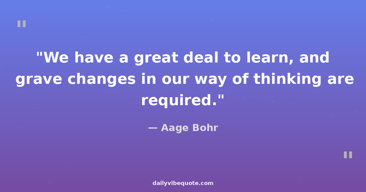 "We have a great deal to learn, and grave changes in our way of thinking are required."