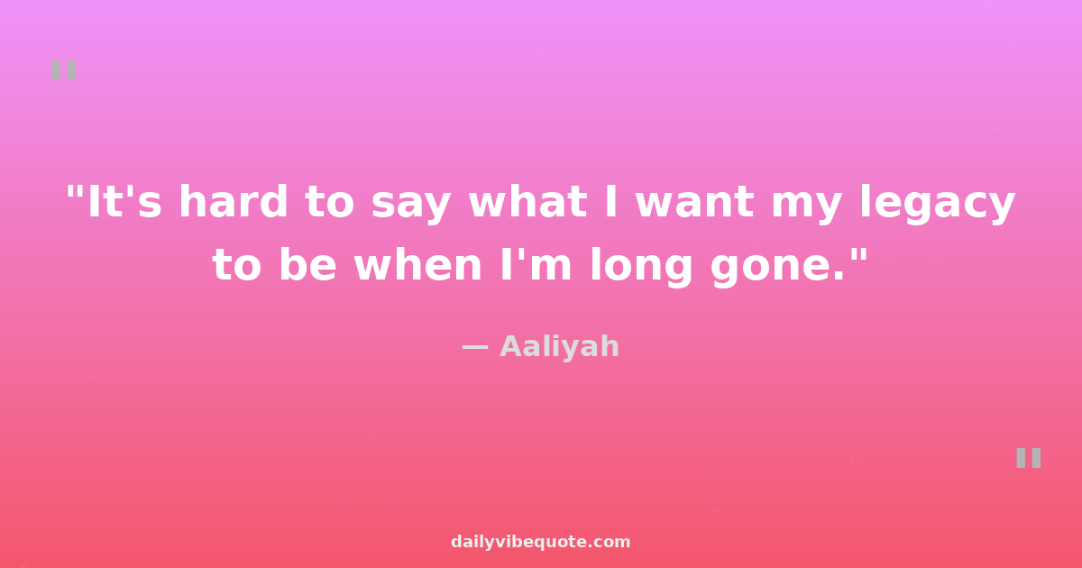 "It's hard to say what I want my legacy to be when I'm long gone."