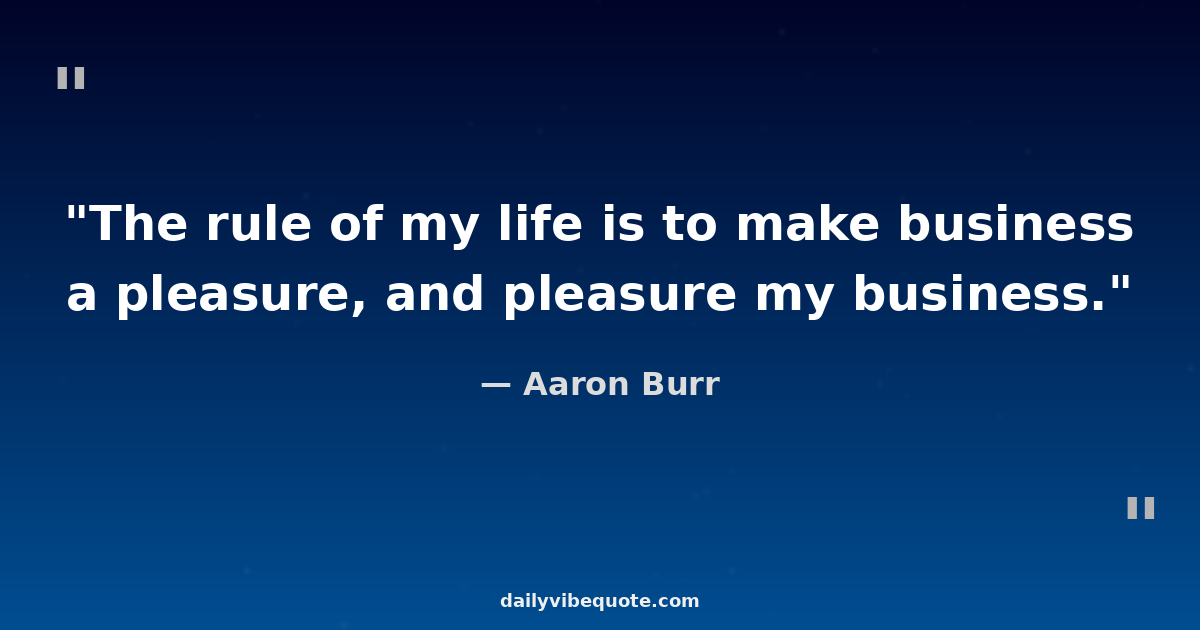 "The rule of my life is to make business a pleasure, and pleasure my business."