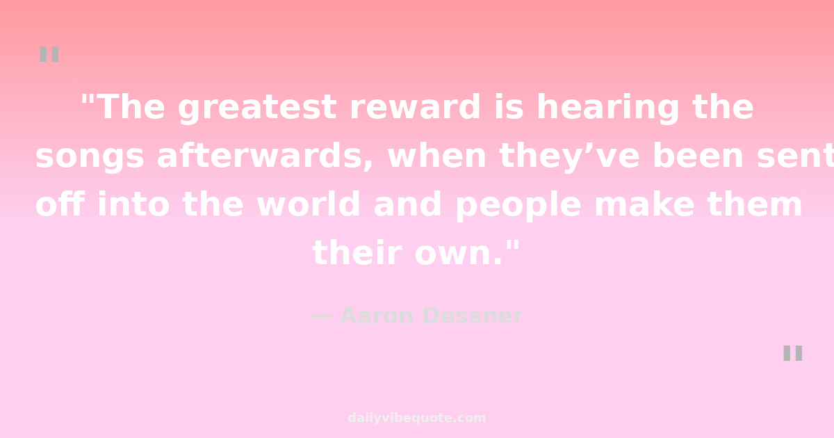 "The greatest reward is hearing the songs afterwards, when they’ve been sent off into the world and people make them their own."