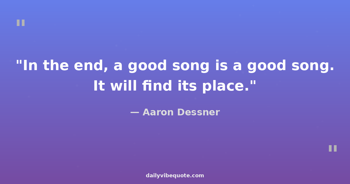 "In the end, a good song is a good song. It will find its place."