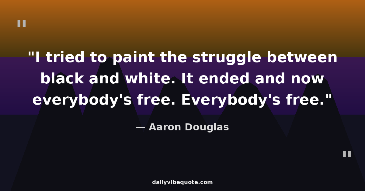 Aaron Douglas (1899–1979) was an African American painter and a major figure in the Harlem Renaissance. He was known for his innovative style influenced by African art and modernism, which played a significant role in defining the visual aesthetic of the Harlem Renaissance. Douglas often depicted scenes of African American life and history in his works, addressing themes of racial pride, social justice, and cultural identity. His murals, illustrations, and paintings were celebrated for their powerful imagery and symbolic representations.