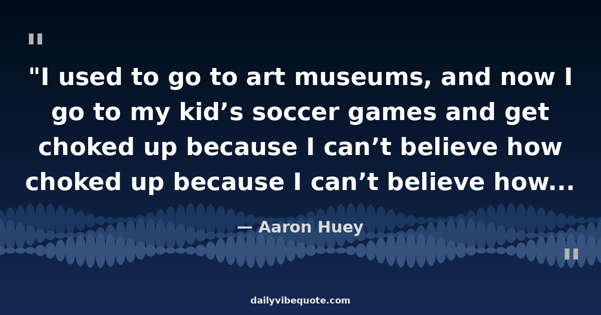 "I used to go to art museums, and now I go to my kid’s soccer games and get choked up because I can’t believe how beautiful it is to watch a 7-year-old’s smile and be alive and be a part of something."