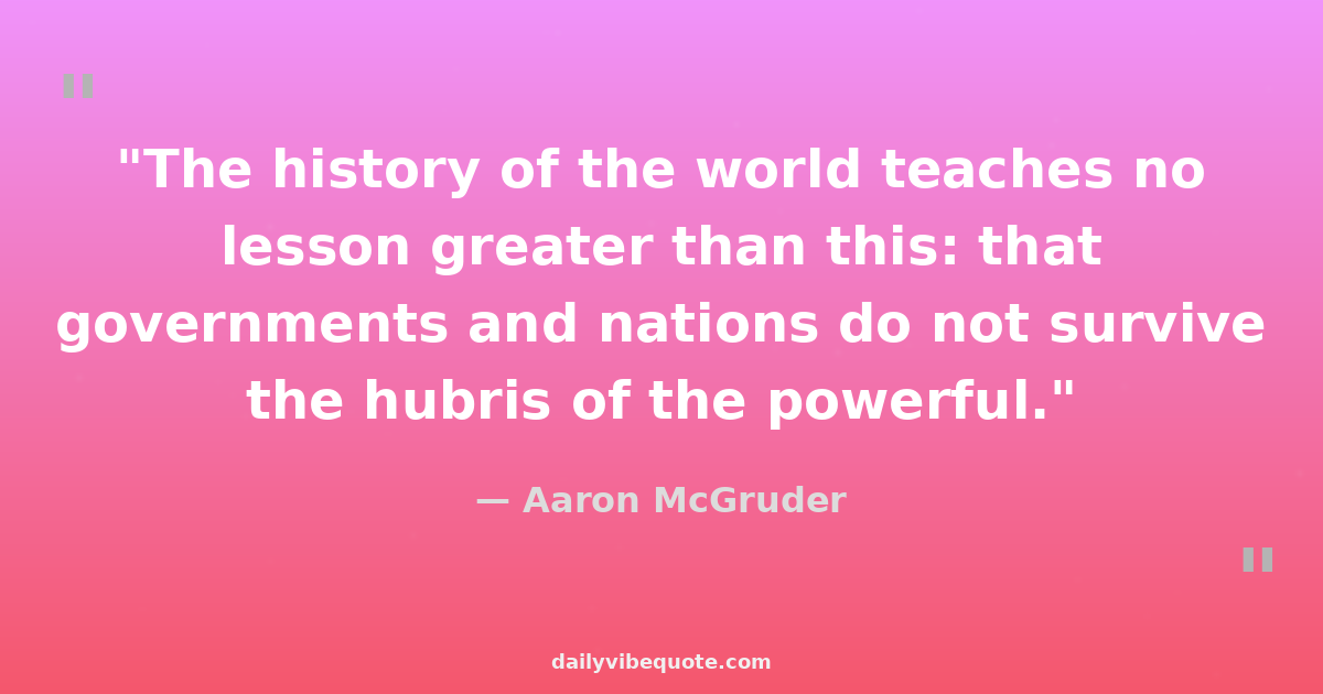 "The history of the world teaches no lesson greater than this: that governments and nations do not survive the hubris of the powerful."