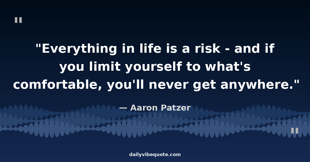 "Everything in life is a risk - and if you limit yourself to what's comfortable, you'll never get anywhere."