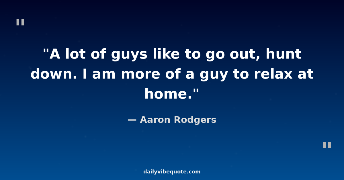 "A lot of guys like to go out, hunt down. I am more of a guy to relax at home."