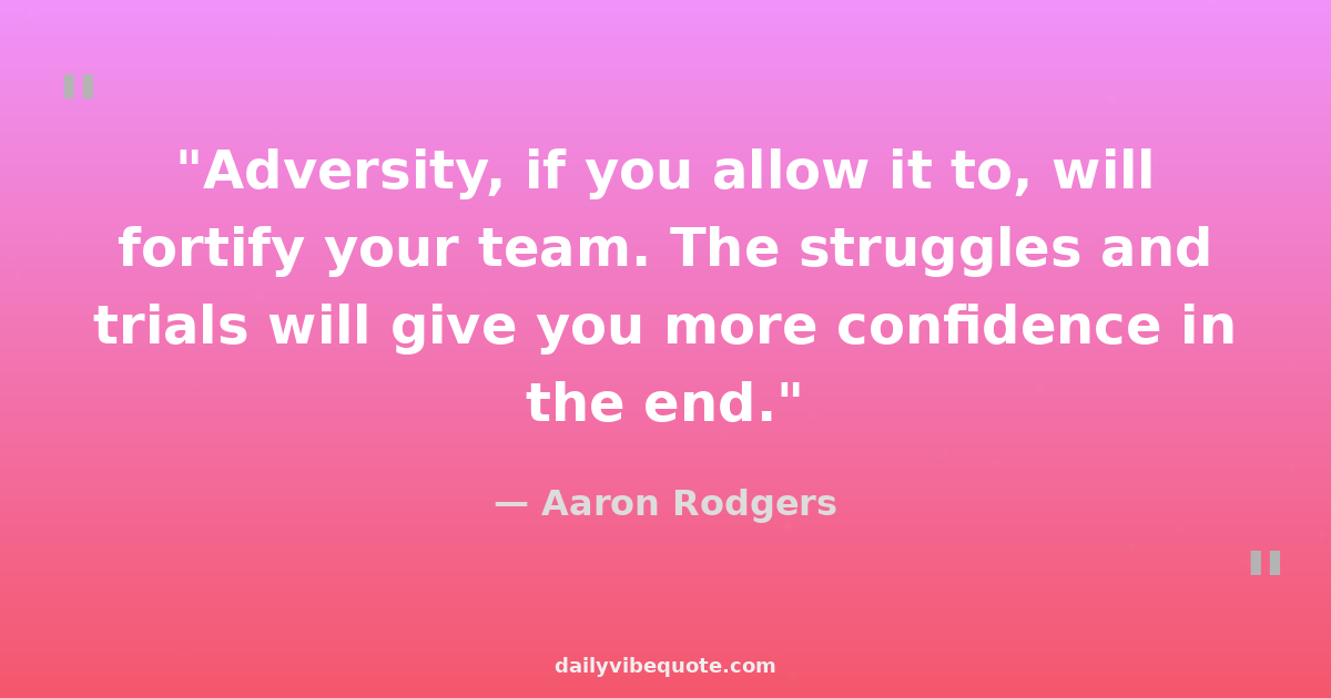 "Adversity, if you allow it to, will fortify your team. The struggles and trials will give you more confidence in the end."