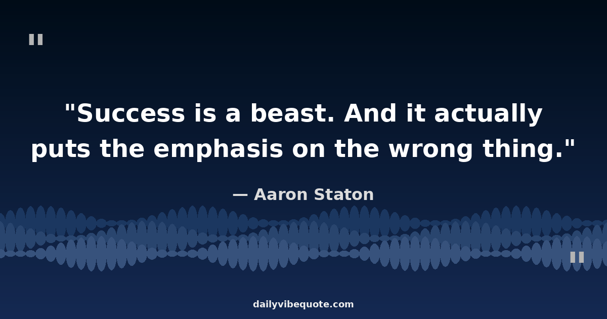 "Success is a beast. And it actually puts the emphasis on the wrong thing."