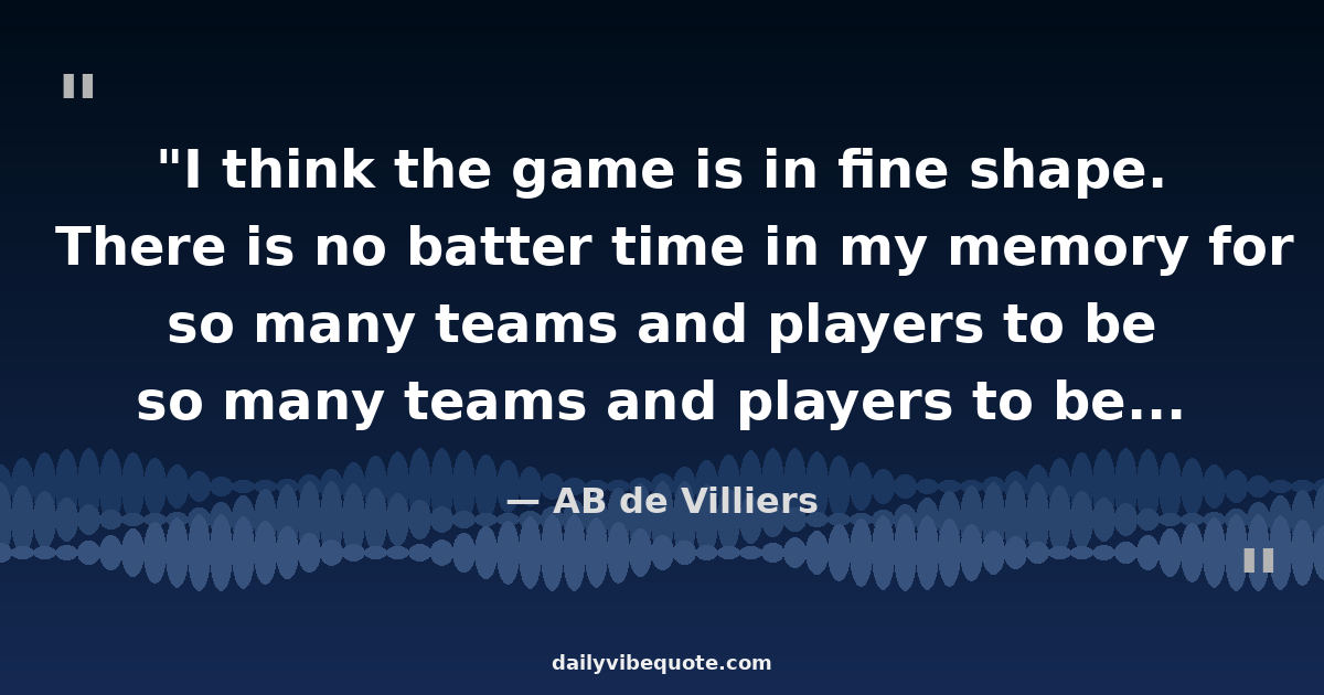 "I think the game is in fine shape. There is no batter time in my memory for so many teams and players to be genuinely considered contenders when the World Cup comes around."