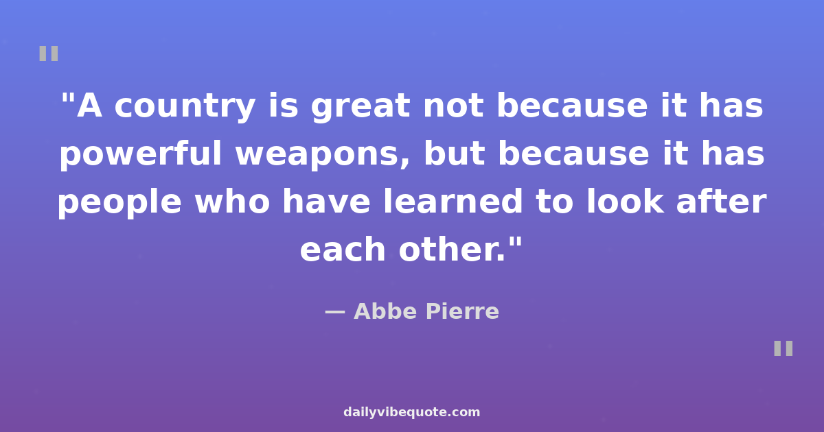 "A country is great not because it has powerful weapons, but because it has people who have learned to look after each other."