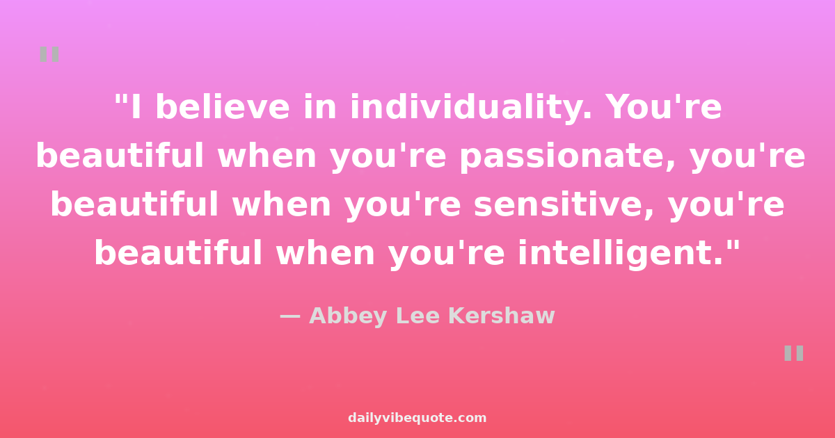"I believe in individuality. You're beautiful when you're passionate, you're beautiful when you're sensitive, you're beautiful when you're intelligent."