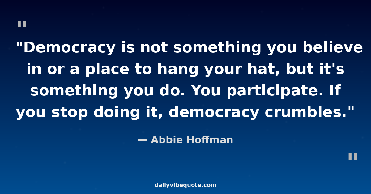 "Democracy is not something you believe in or a place to hang your hat, but it's something you do. You participate. If you stop doing it, democracy crumbles."