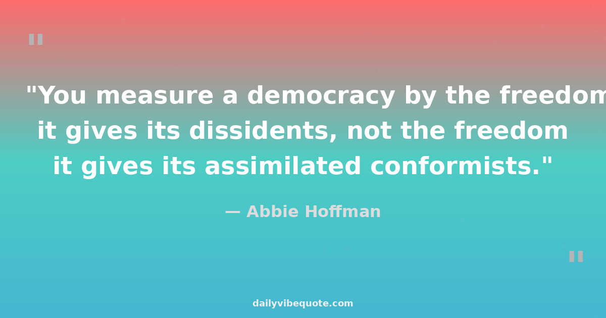 "You measure a democracy by the freedom it gives its dissidents, not the freedom it gives its assimilated conformists."