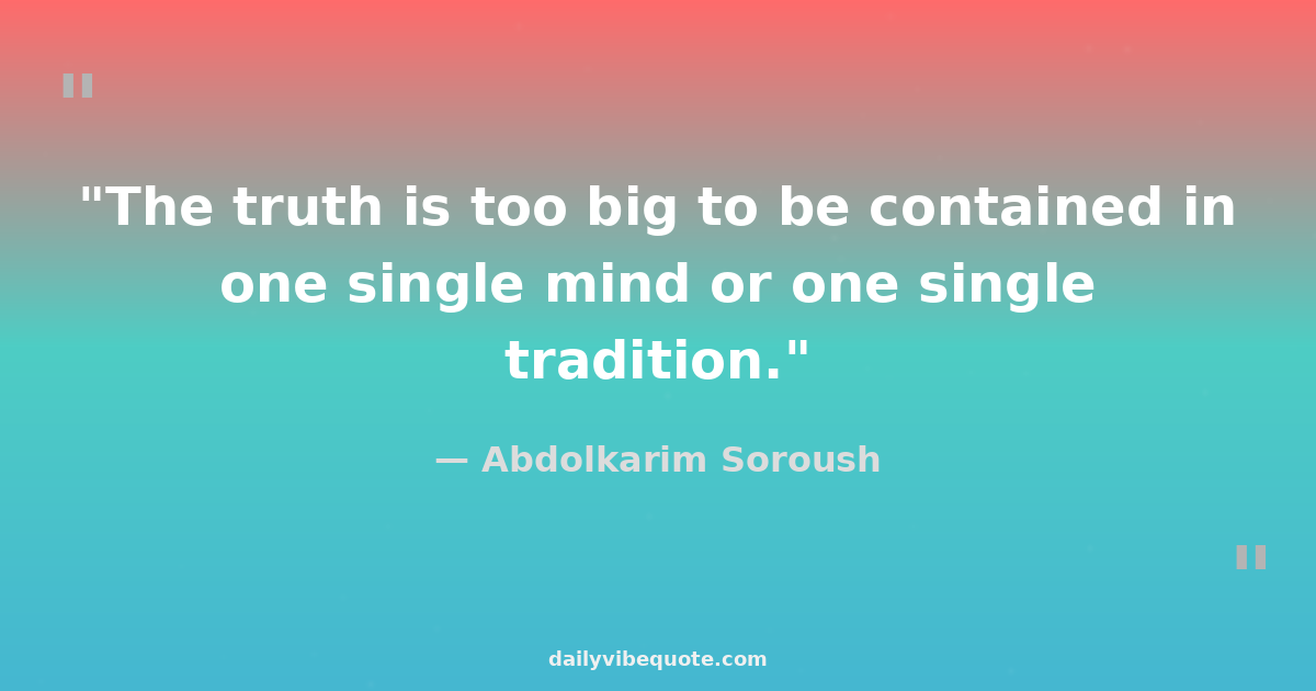 "The truth is too big to be contained in one single mind or one single tradition."