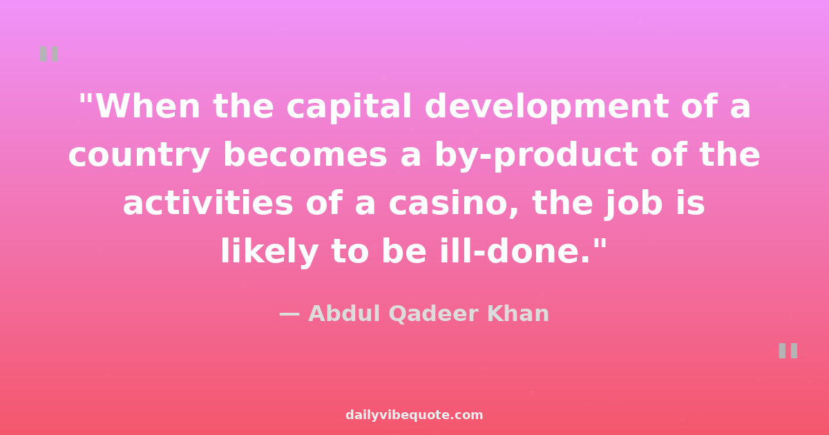 "When the capital development of a country becomes a by-product of the activities of a casino, the job is likely to be ill-done."