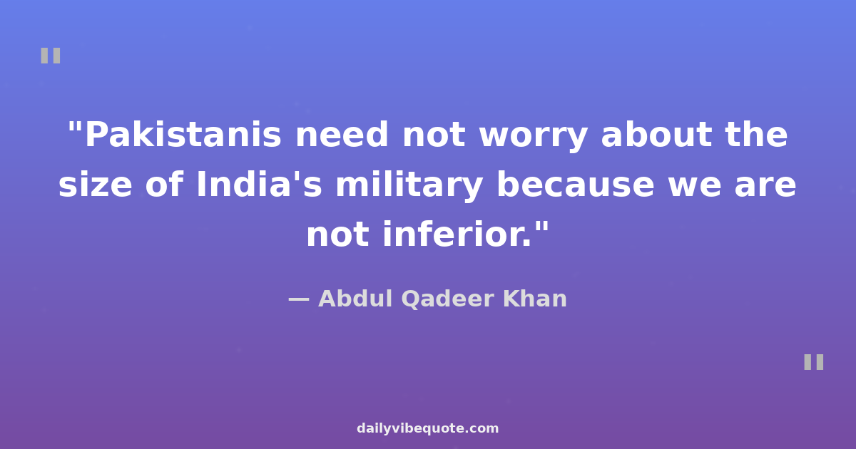 "Pakistanis need not worry about the size of India's military because we are not inferior."