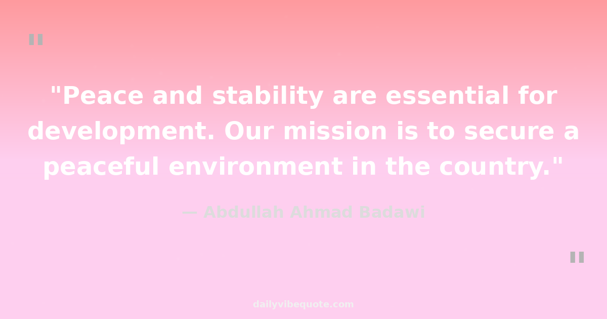 "Peace and stability are essential for development. Our mission is to secure a peaceful environment in the country."