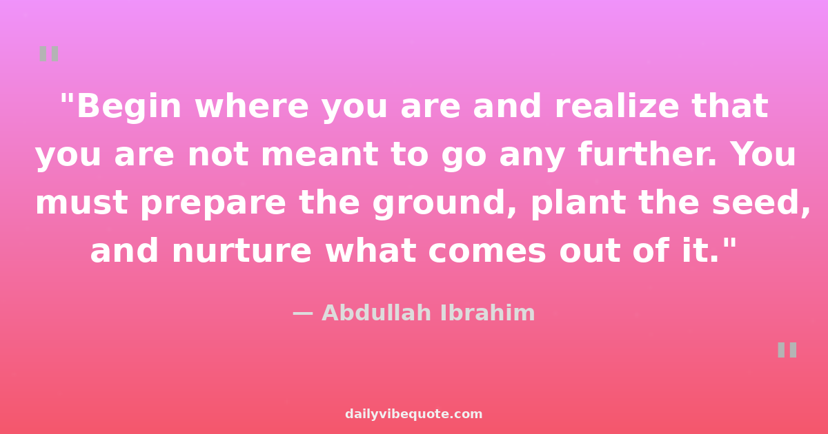 "Begin where you are and realize that you are not meant to go any further. You must prepare the ground, plant the seed, and nurture what comes out of it."