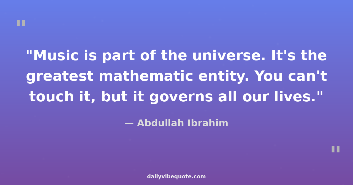 "Music is part of the universe. It's the greatest mathematic entity. You can't touch it, but it governs all our lives."