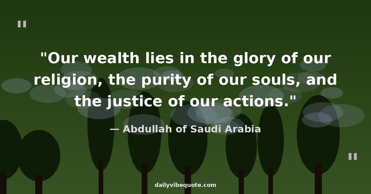 "Our wealth lies in the glory of our religion, the purity of our souls, and the justice of our actions."