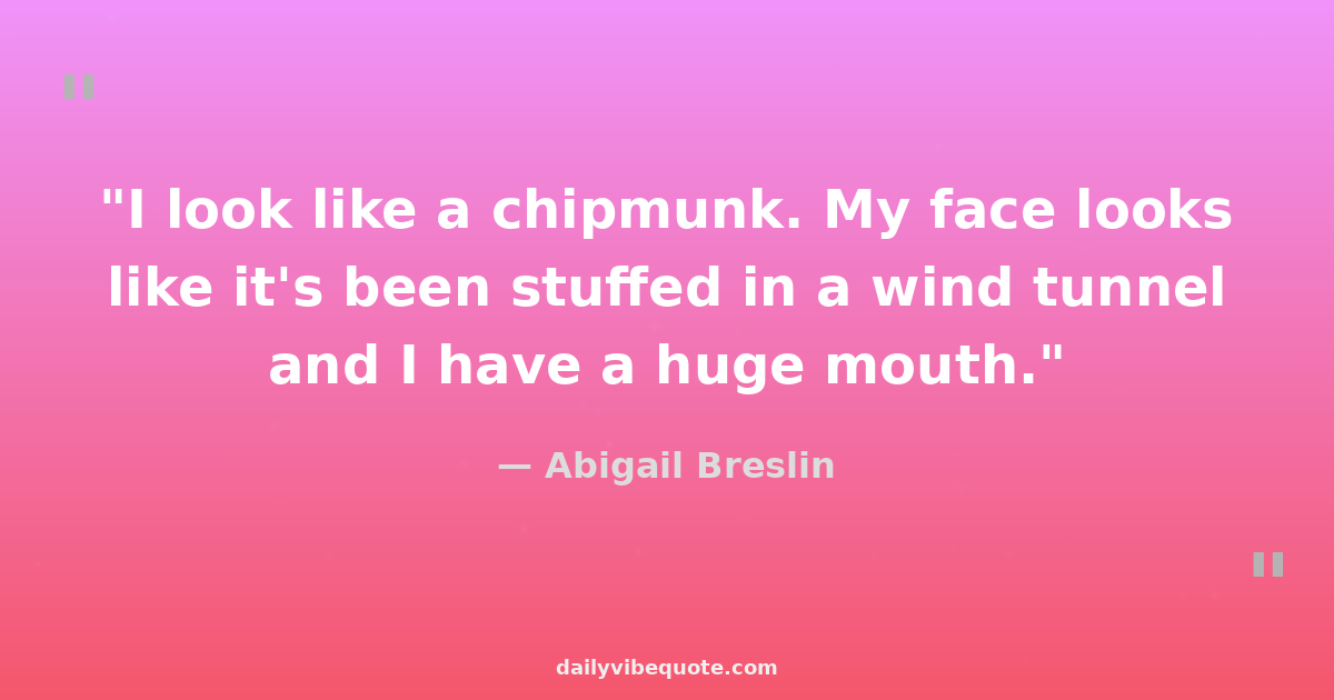 "I look like a chipmunk. My face looks like it's been stuffed in a wind tunnel and I have a huge mouth."
