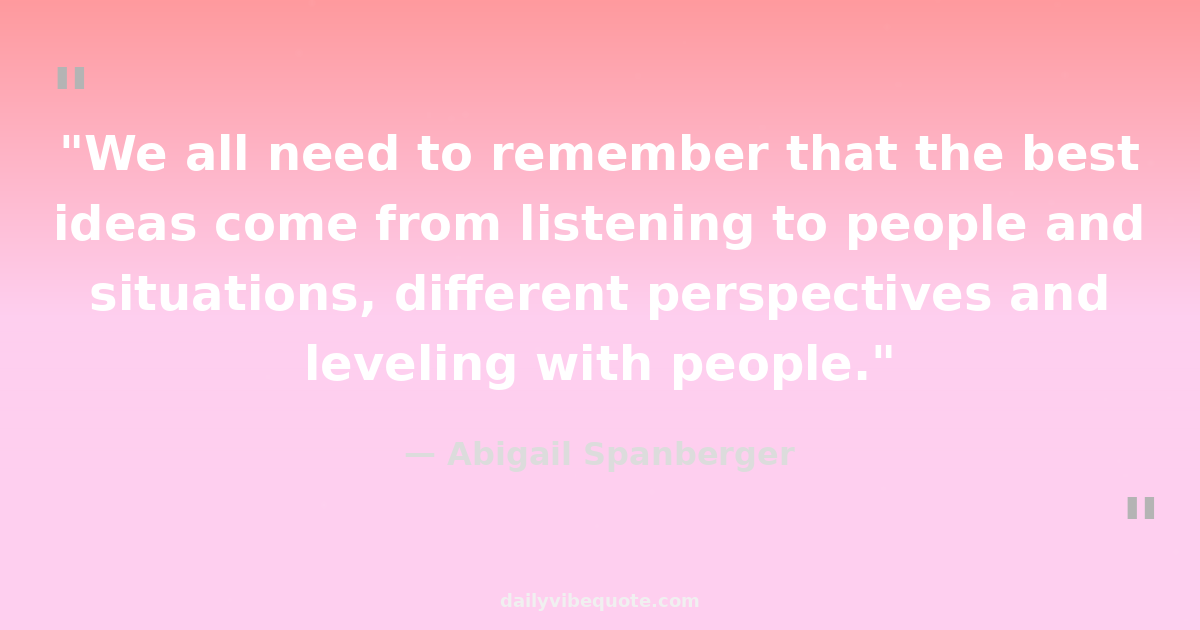 "We all need to remember that the best ideas come from listening to people and situations, different perspectives and leveling with people."