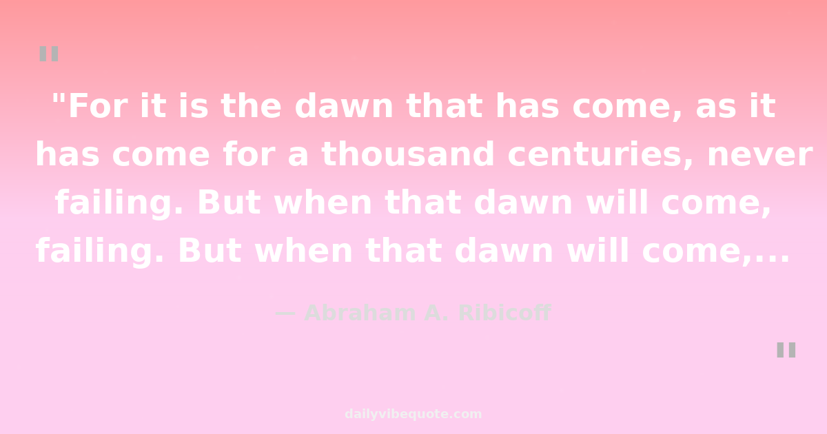 "For it is the dawn that has come, as it has come for a thousand centuries, never failing. But when that dawn will come, of our emancipation, from the fear of bondage and the bondage of fear, why, that is a secret."