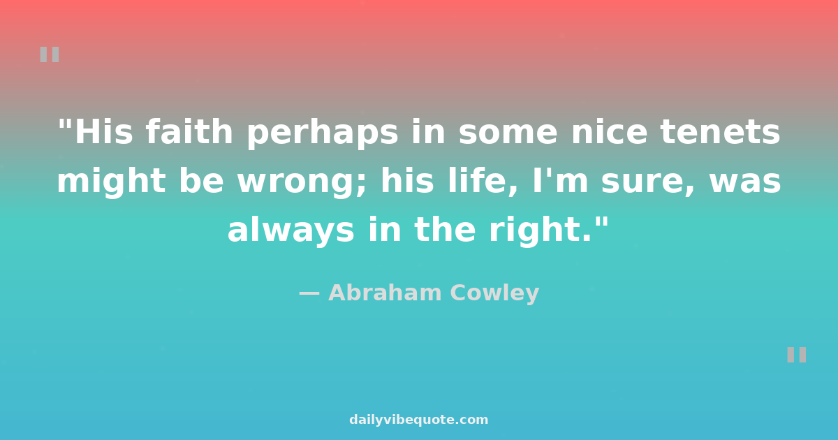 "His faith perhaps in some nice tenets might be wrong; his life, I'm sure, was always in the right."