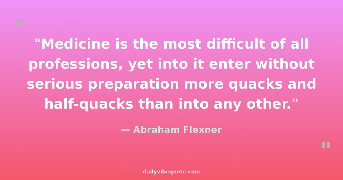 "Medicine is the most difficult of all professions, yet into it enter without serious preparation more quacks and half-quacks than into any other."