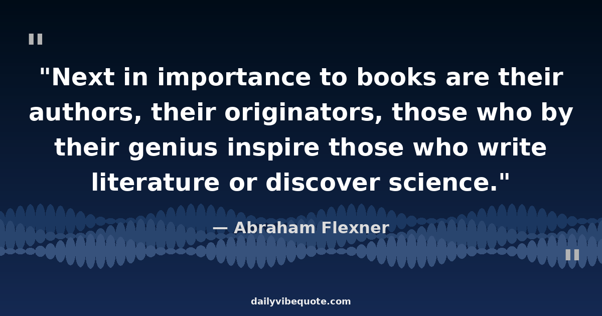 "Next in importance to books are their authors, their originators, those who by their genius inspire those who write literature or discover science."