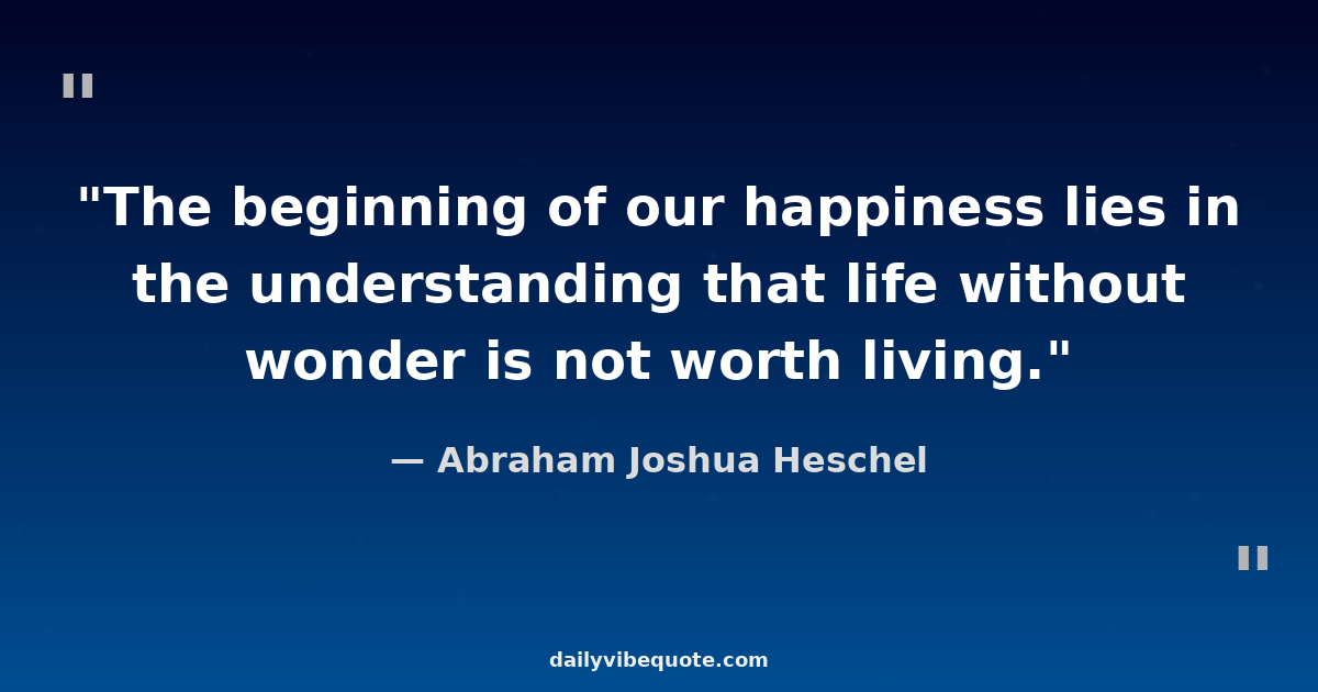 "The beginning of our happiness lies in the understanding that life without wonder is not worth living."