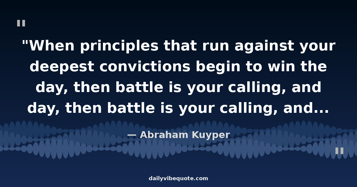 "When principles that run against your deepest convictions begin to win the day, then battle is your calling, and peace has become sin; you must, at the price of dearest peace, lay your convictions bare before friend and enemy, with all the fire of your faith."