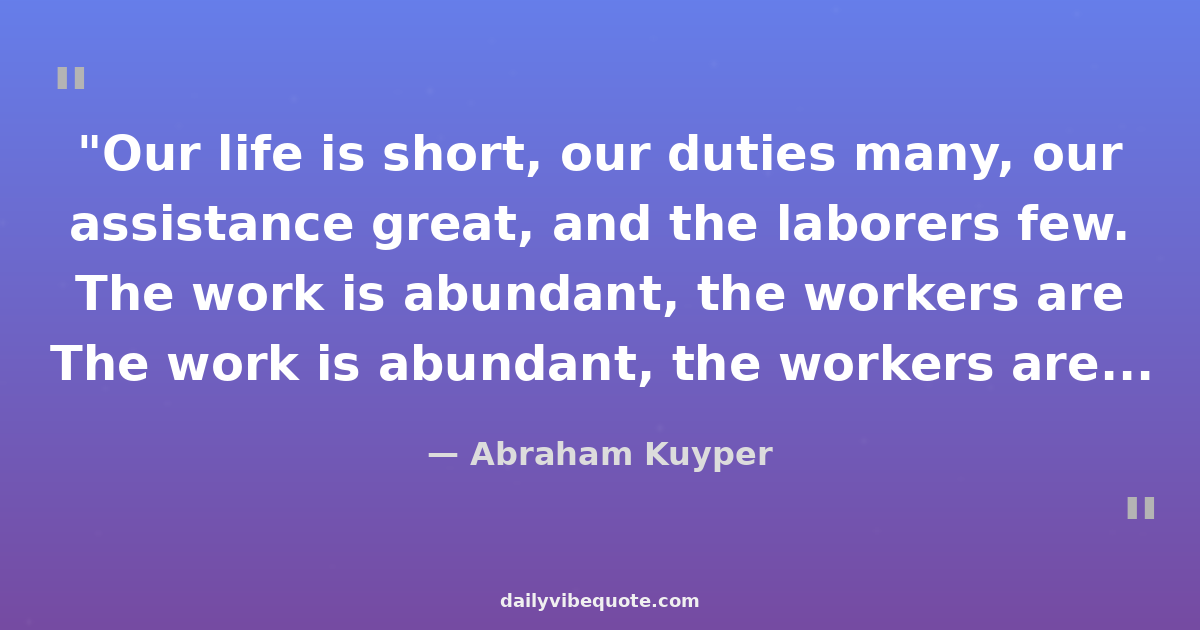 "Our life is short, our duties many, our assistance great, and the laborers few. The work is abundant, the workers are few; the time is short, the effort is great, the prize is rich, and the master is urgent."