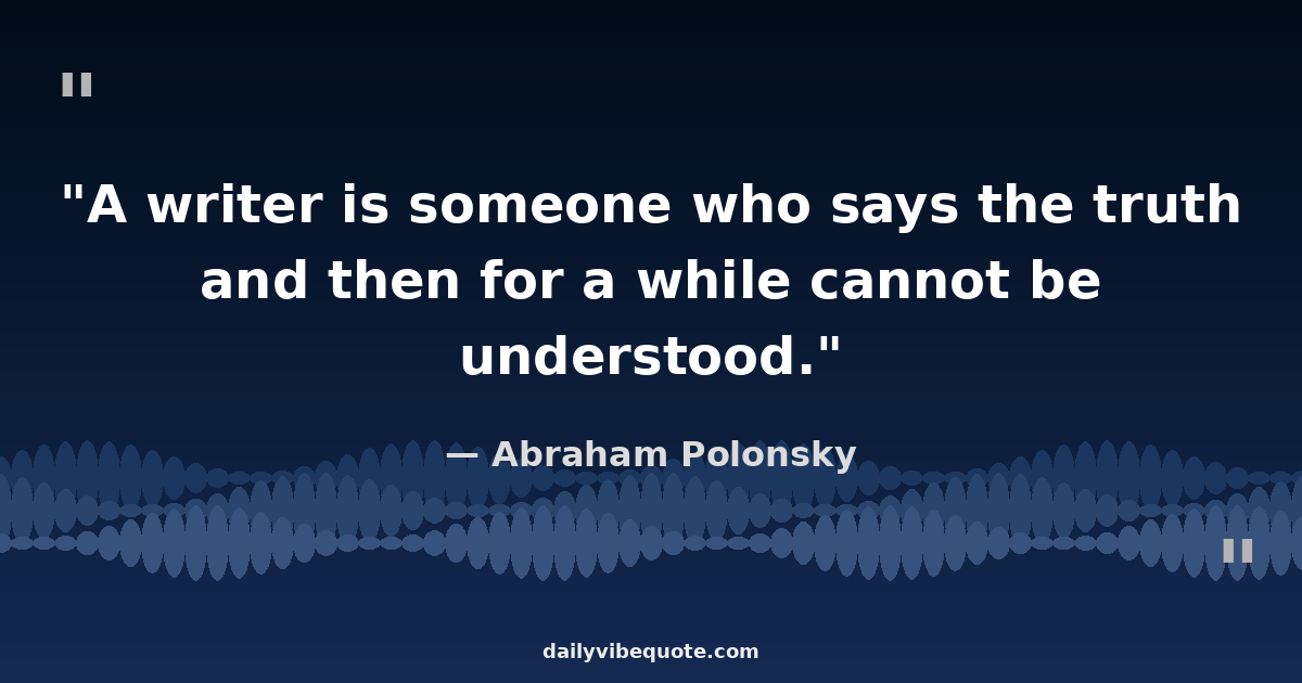"A writer is someone who says the truth and then for a while cannot be understood."