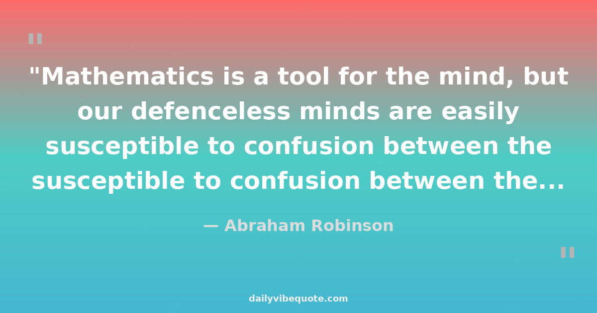 "Mathematics is a tool for the mind, but our defenceless minds are easily susceptible to confusion between the tool and the object for which the tool is being used."
