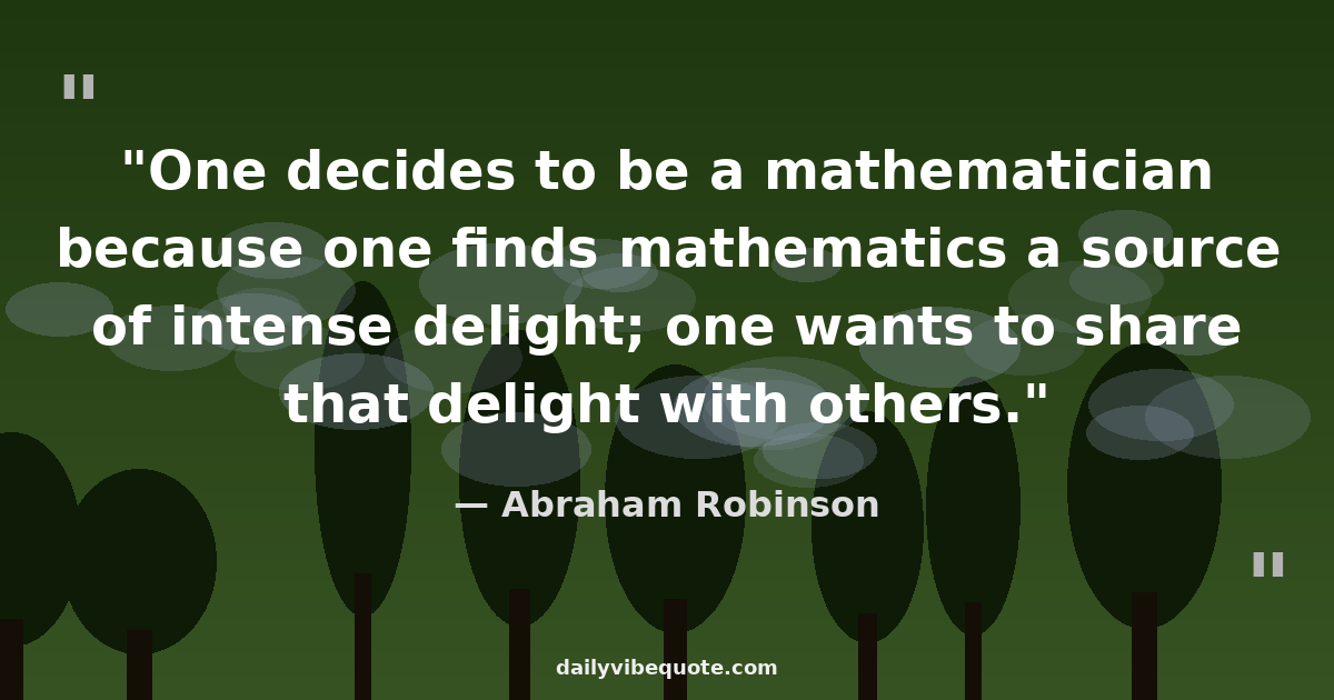"One decides to be a mathematician because one finds mathematics a source of intense delight; one wants to share that delight with others."