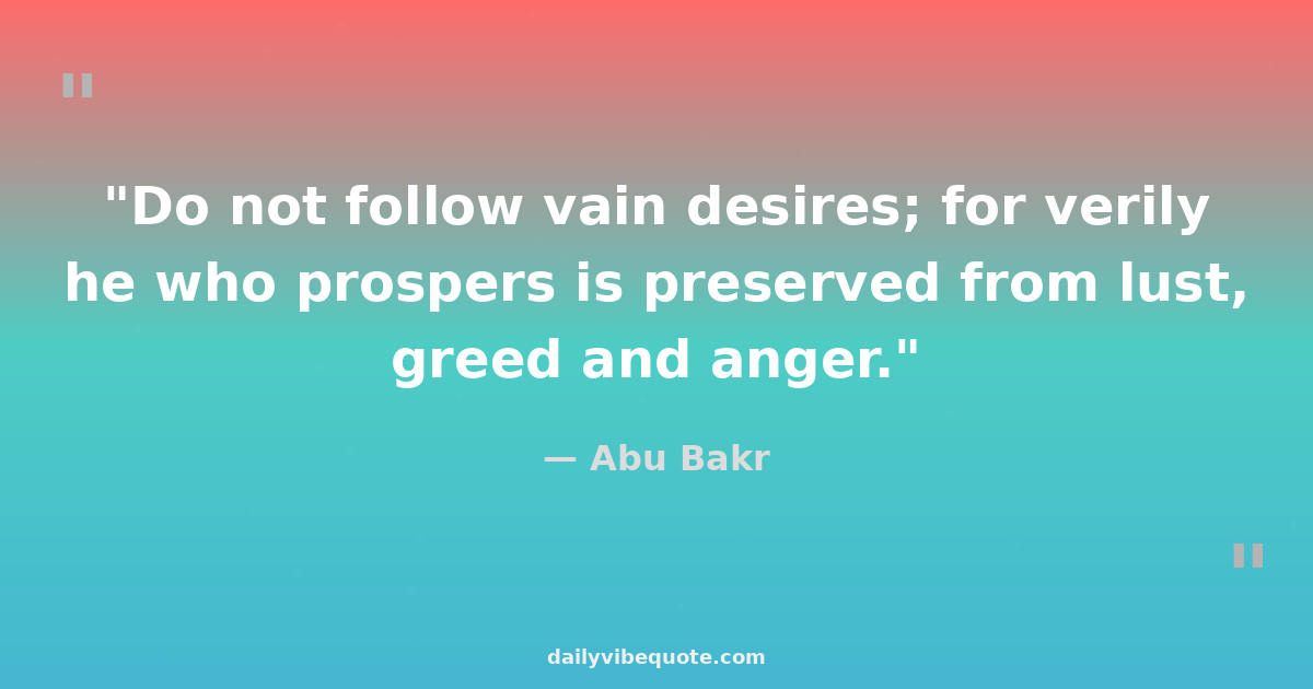 "Do not follow vain desires; for verily he who prospers is preserved from lust, greed and anger."