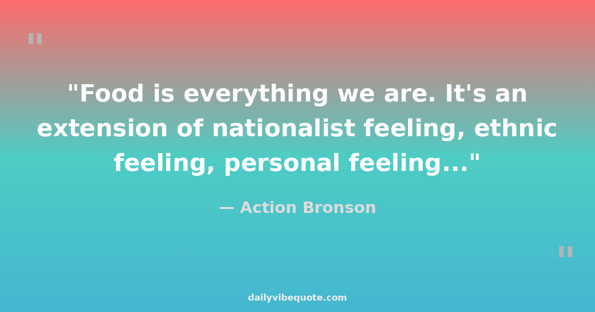 "Food is everything we are. It's an extension of nationalist feeling, ethnic feeling, personal feeling..."