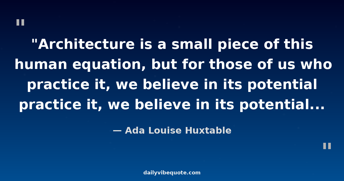 "Architecture is a small piece of this human equation, but for those of us who practice it, we believe in its potential to make a difference, to enlighten and to enrich the human experience, to penetrate the barriers of misunderstandin"