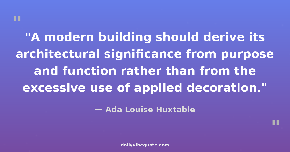 "A modern building should derive its architectural significance from purpose and function rather than from the excessive use of applied decoration."