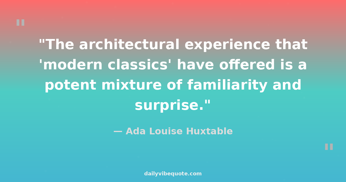 "The architectural experience that 'modern classics' have offered is a potent mixture of familiarity and surprise."
