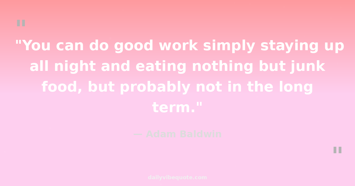 "You can do good work simply staying up all night and eating nothing but junk food, but probably not in the long term."