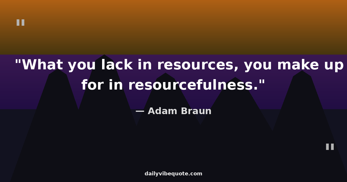 "What you lack in resources, you make up for in resourcefulness."
